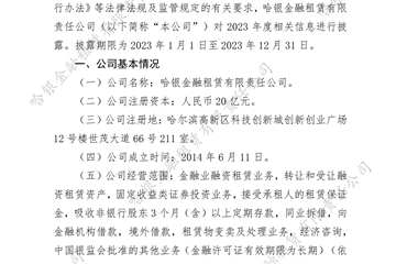 哈銀金融租賃有限責(zé)任公司2023年度信息披…
